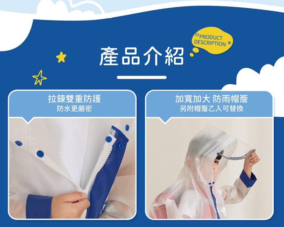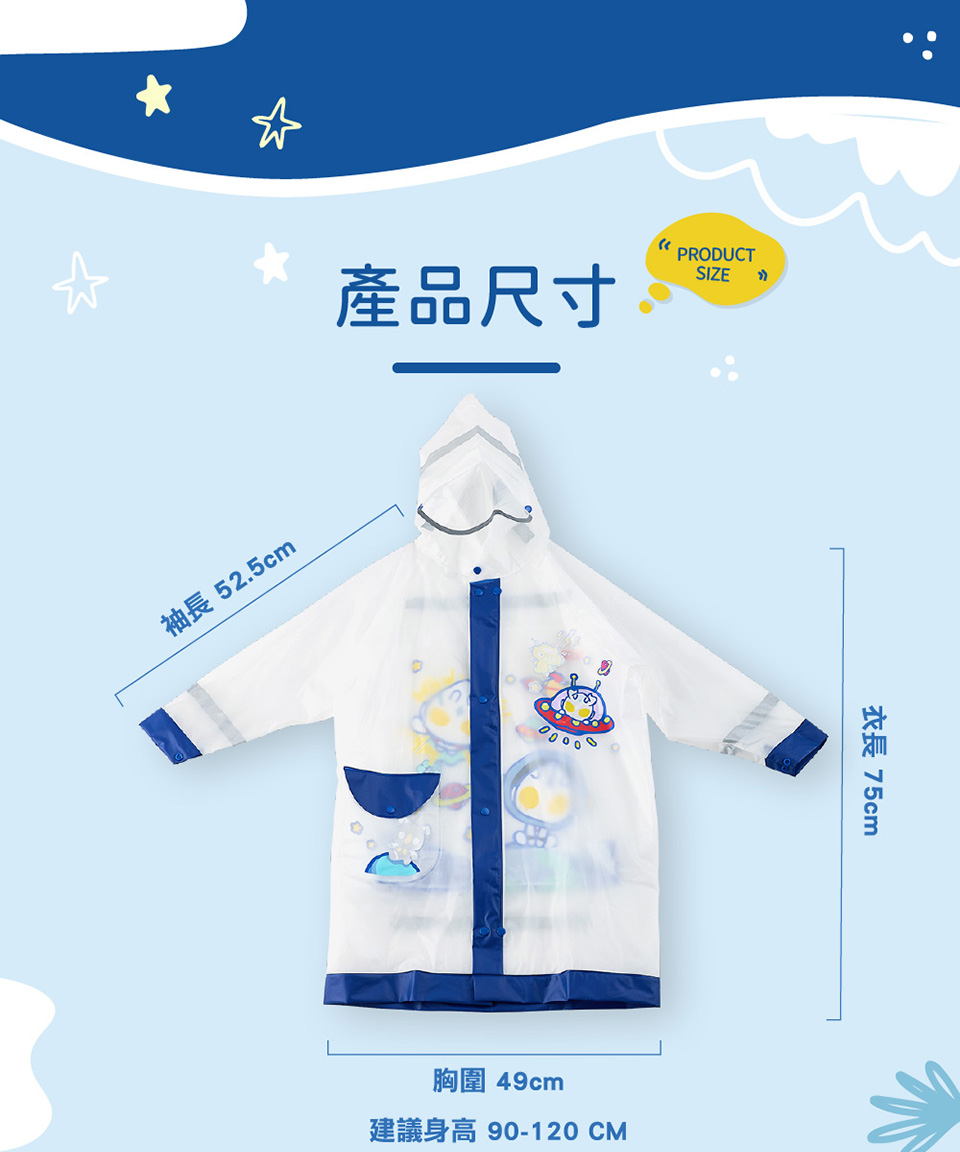 產品規格:雨衣:衣長108公分(含帽子)衣寬51公分